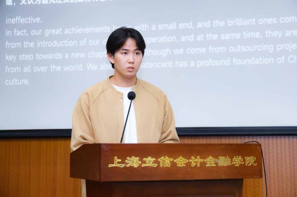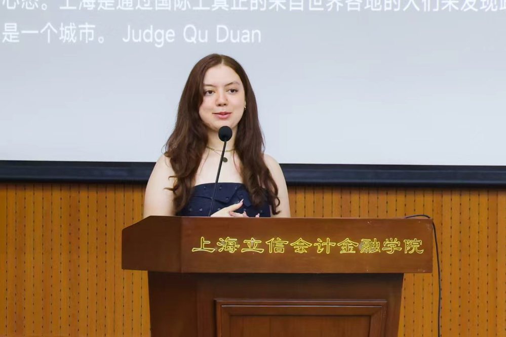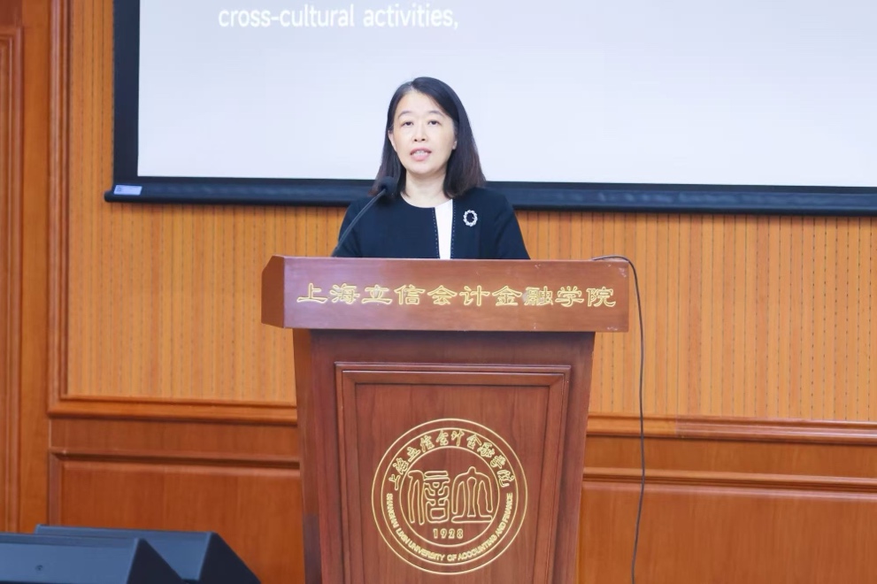 刘永琴代表学校向2025级来华留学生新生表示热烈欢迎。她指出,选择立信既是对学校办学实力的认可,也是对中国的信任与期待。留学生的到来为上海与立信注入了新的活力。她提出三点期望:一是希望学生知华友华,做严守华章的青年学子;二是鼓励学生潜心钻研学问,做追求真知的求知者;三是积极融入校园,做立信精神的传人,充分利用学校资源实现全面发展。她表示学校将积极为留学生的学业进步提供支持,希望他们在华收获知识、友谊与成长。