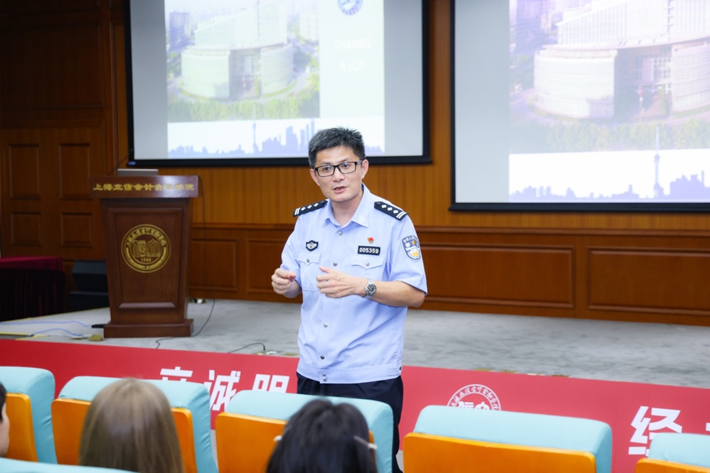 上海市出入境管理局外国人管理处的警官为留学生们详细讲解了签证办理、居留许可、住宿登记等涉外事务的办理流程和注意事项,并现场解答了同学们的疑问,帮助新生更好地适应在华生活。留学生工作办公室为新生介绍了学校相关规章制度,积极助力留学生新生开启崭新求学生涯。